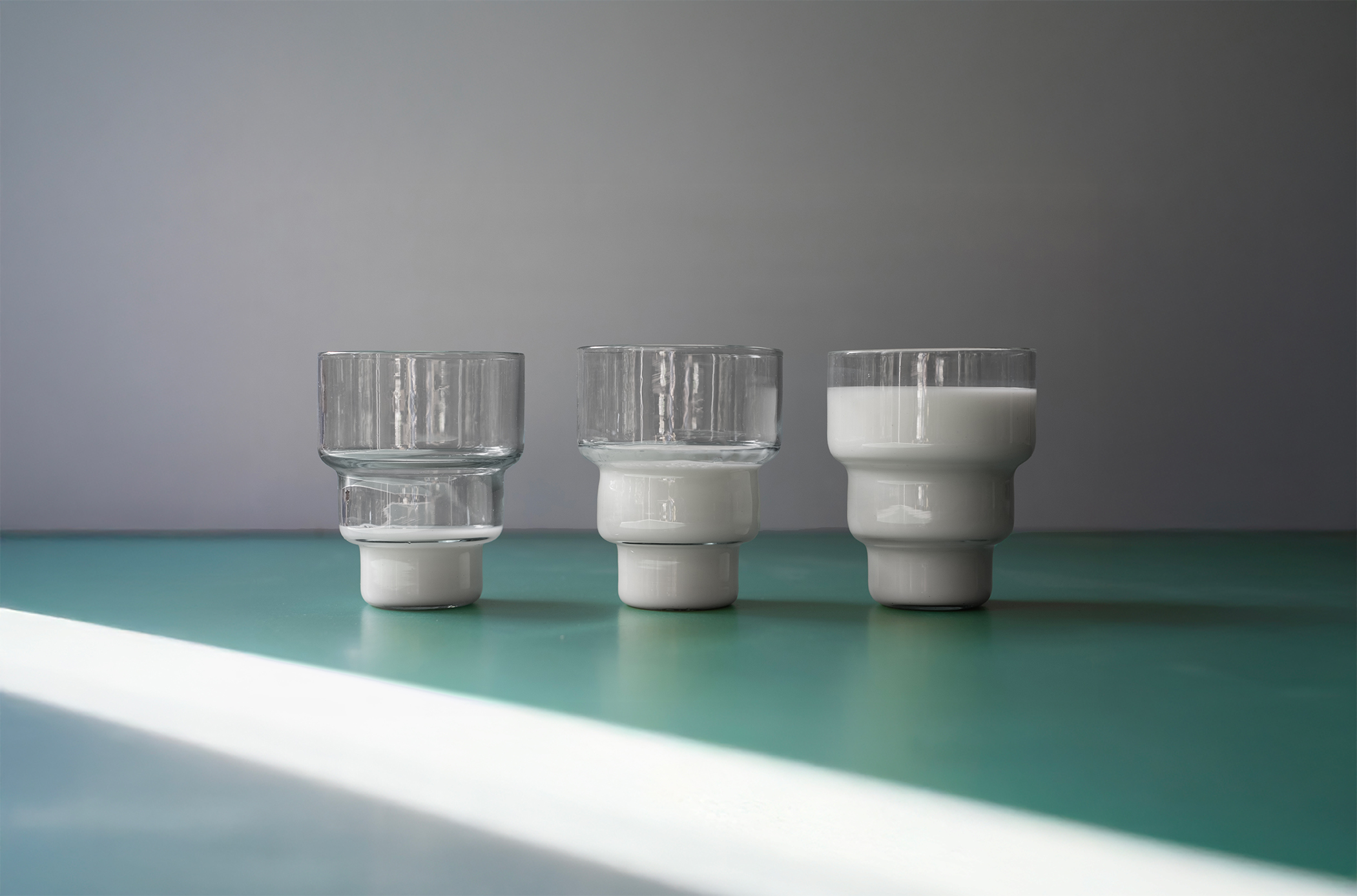 The Triple Tumbler is a search for a new archetype. By questioning the conventional silhouette of a drinking glass, the design evolved into a sculptural ziggurat shape. Each step holds a specific amount of liquid, allowing the glass to function as a measuring tool: the bottom tier equals a shot, the first two tiers together form a glass of wine, and the full volume accommodates any drink of choice.